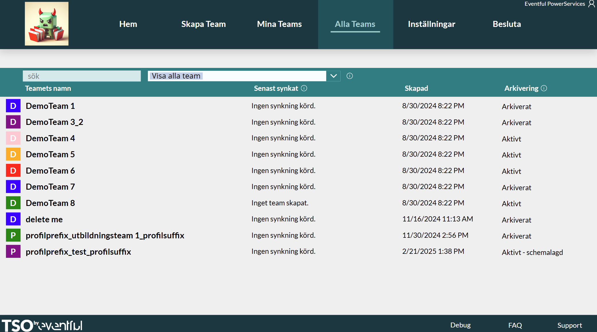 Teamsynk Organisation är tjänsten för dig som vill skapa dynamiska teams. Tjänsten hjäper Organisationen att skapa kontroll och översikt av alla organisationens teams.